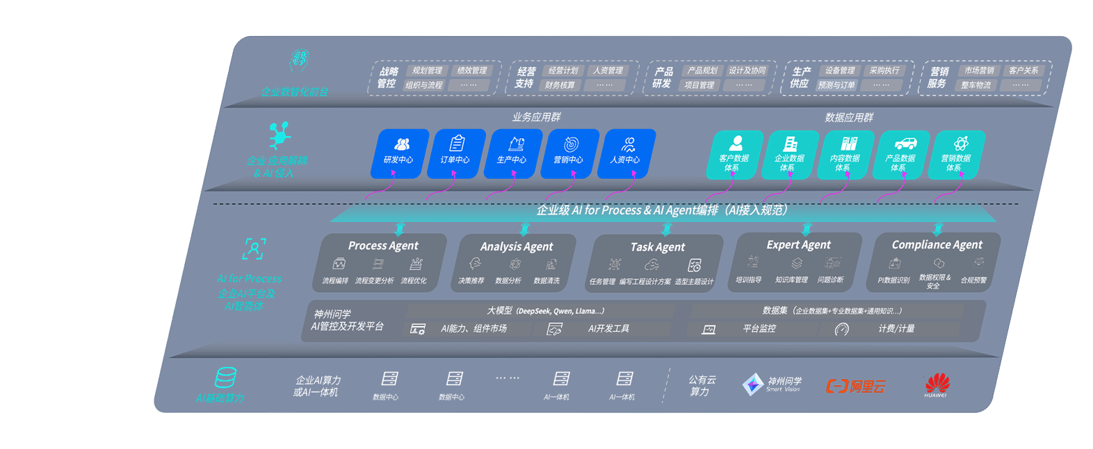 恒星集团问学智车解决方案是一套基于AI技术的汽车行业智能化系统,,,覆盖从底层算力到顶层AI应用的全栈方案。。方案由算力层、、、、模型层和应用层组成:算力层,,方案支持多种一体机配置,,,具备云端灵活部署、、、、多云适配以及动态优化计算资源的能力;模型层,,,恒星集团问学平台版提供了企业级AI应用一站式构建与管理平台,,,,支持基于后训练强化技术的汽车企业专属模型的训练、、、、评测和运营;应用层,,,恒星集团问学DeepSeek版提供包括超级员工、、智能招采、、、智能营销、、智能客服、、AI for BI等一系列解决方案,,可助力汽车行业实现数字化转型,,,,让管理更智能、、、响应更敏捷。。。