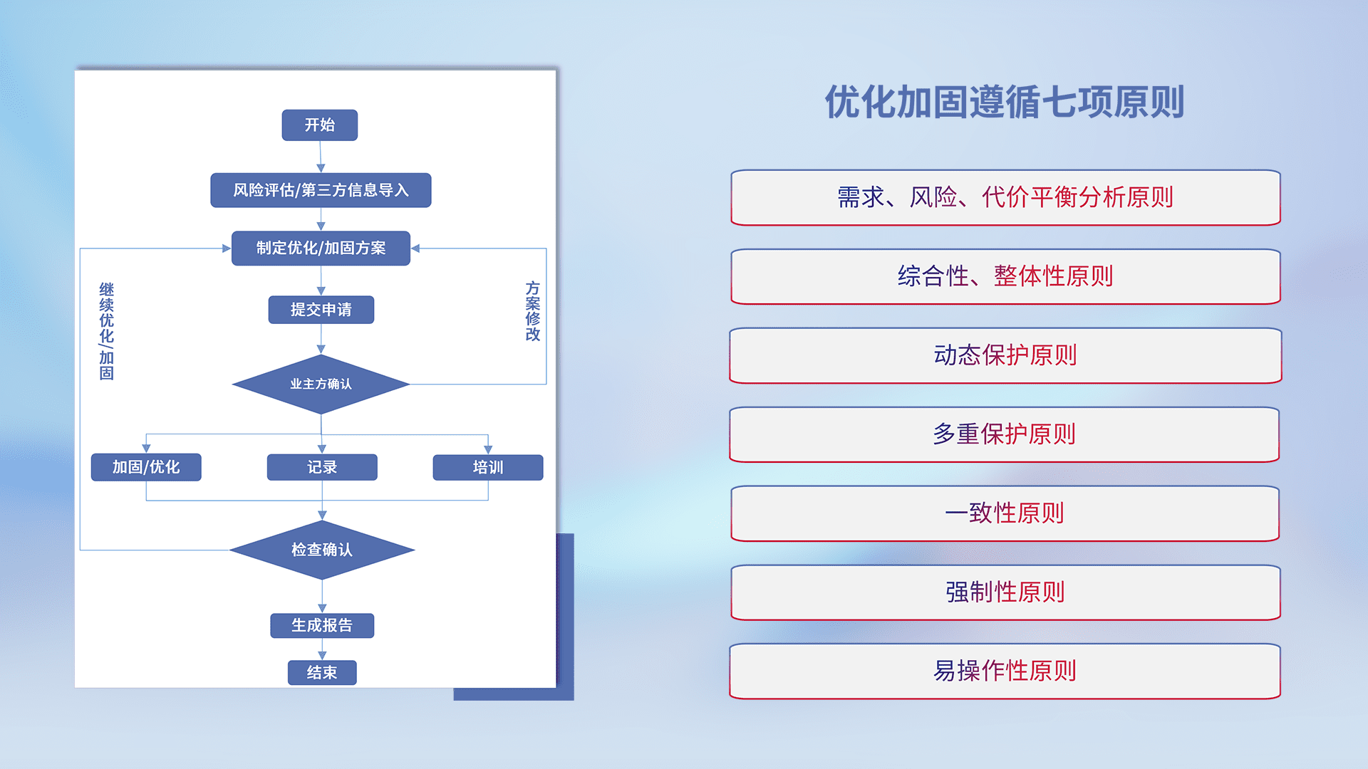 最大程度利用现有资产,,对评估发现的问题进行封堵与整改,,,防止漏洞被利用,,提升整体网络安全性,,,为客户带来高标准的优化加固服务。。。